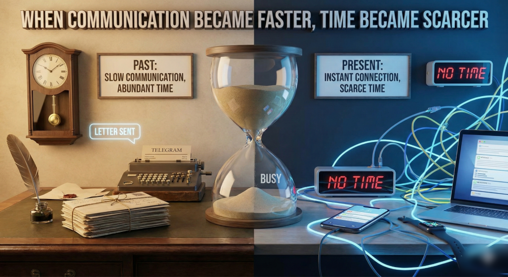 Earlier, communication was slow but intent was strong. Today, communication is instant, but availability is limited. Technology removed physical barriers, yet time—once abundant in spirit—has become the scarcest resource.